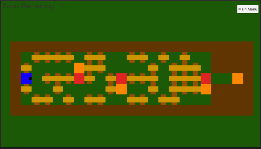 Unity is a language that I have much more proficiency in and is generally more useful, so programming in all of the main mechanics is straightforward. A turn counter, a 2D array of a class that can hold all the information needed, and the same rules from Puzzlescript create the game rather quickly based upon the Puzzlescript engine.