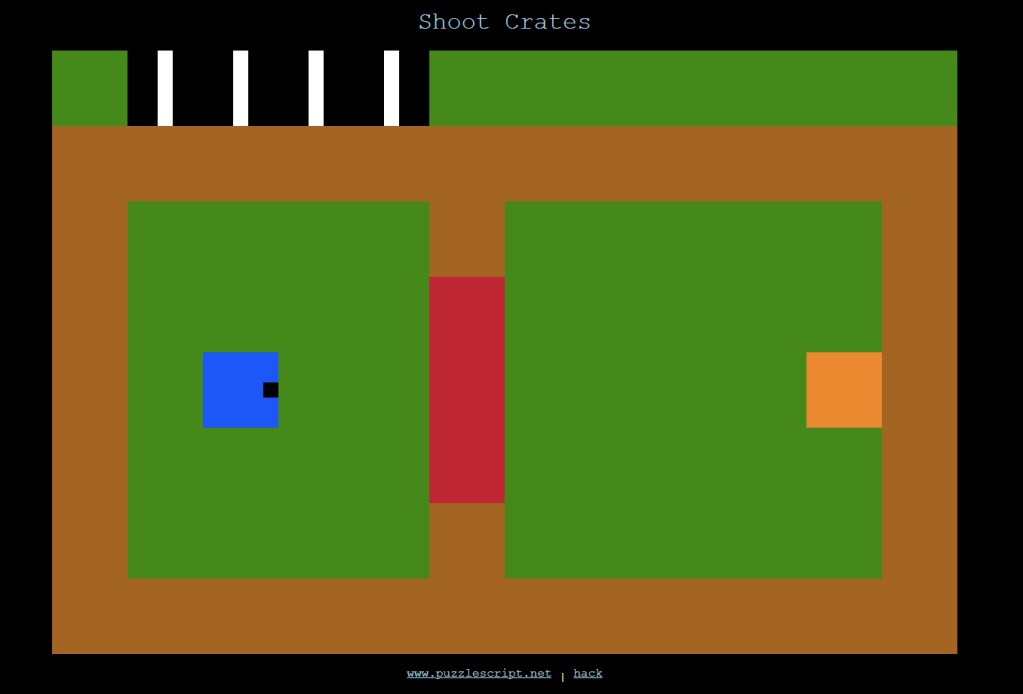 Puzzlescript is a language that can only use rules to change things. An example of a rule in Shoot Crates is [ > Player | Block ] -> [ > Player | > Block ], which means when a player moves into a block, move the block and the player one over in that direction. This is why the turn timer is a binary clock, because that is all Puzzlescript could handle. My levels would need to be changed slightly to adhere to a power of 2 number of turns, which is why many have extra squares at the end for no apparent reason.