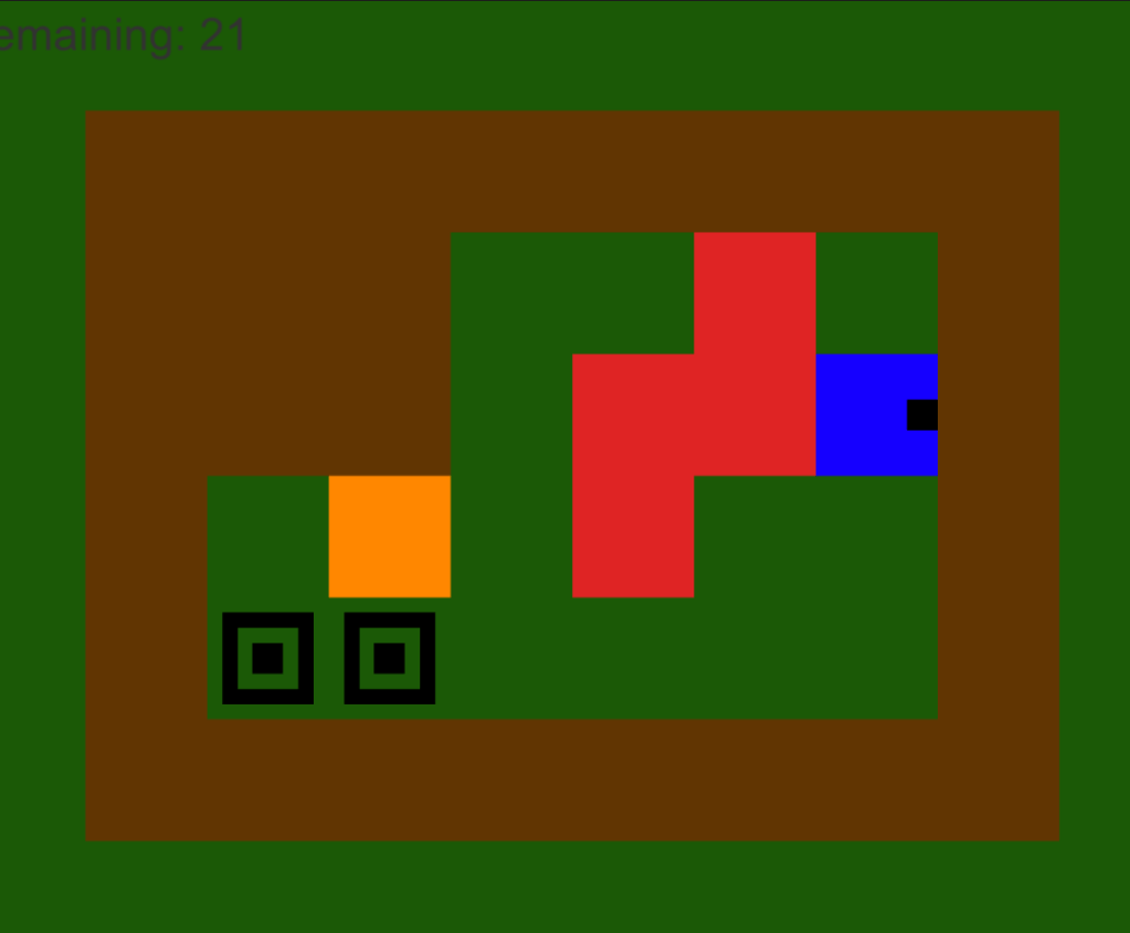 The second requirement had an issue with my main mechanic of shooting blocks. Original block push games have one solution, in the sense that there is only one gameplay position that is a successful completion of the level. Different blocks could be in the different goal spots, but those are considered the same solution because they require the same transformations of the original position.